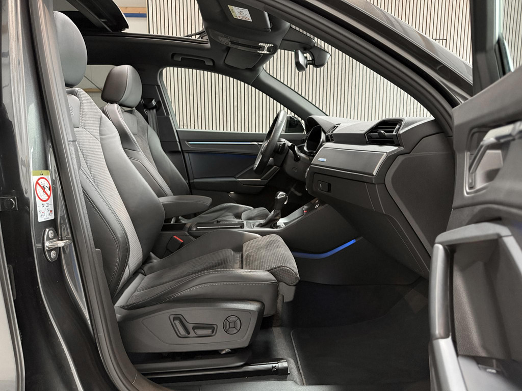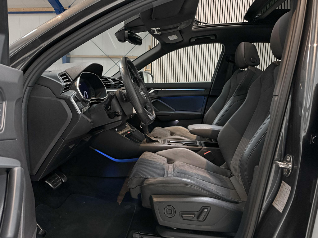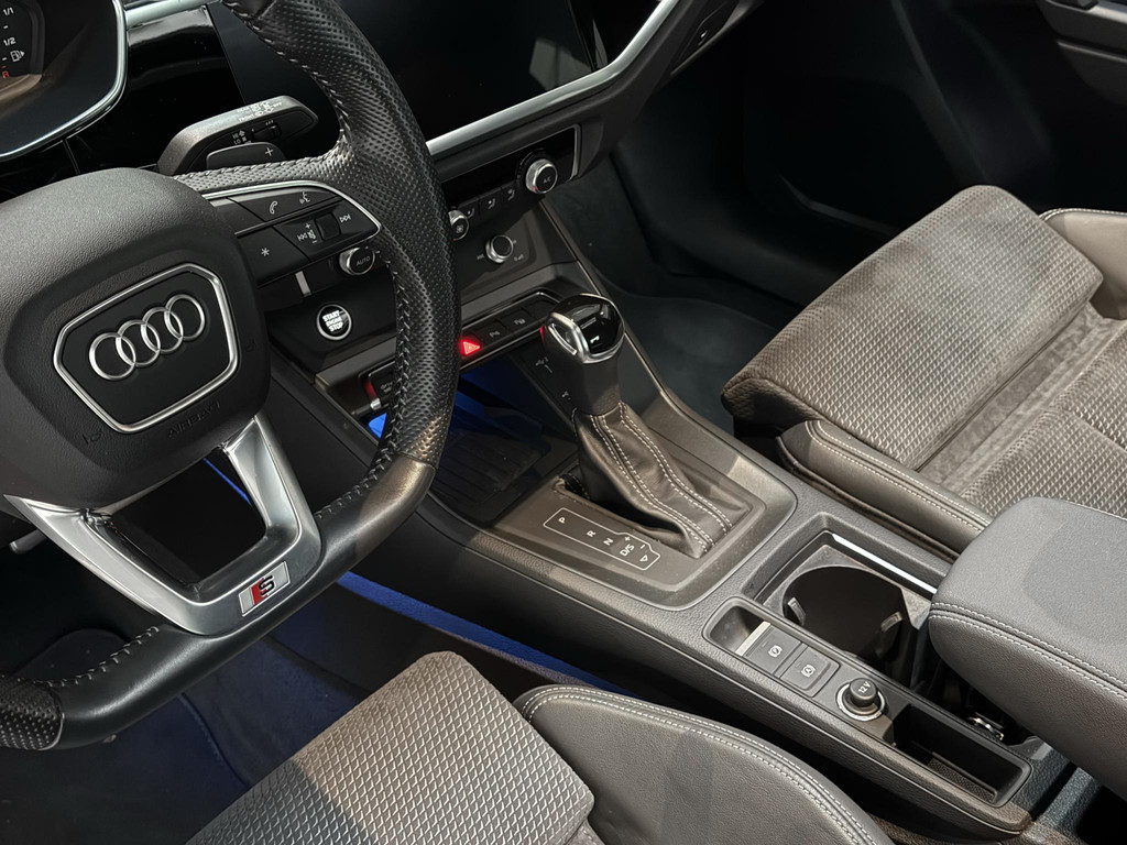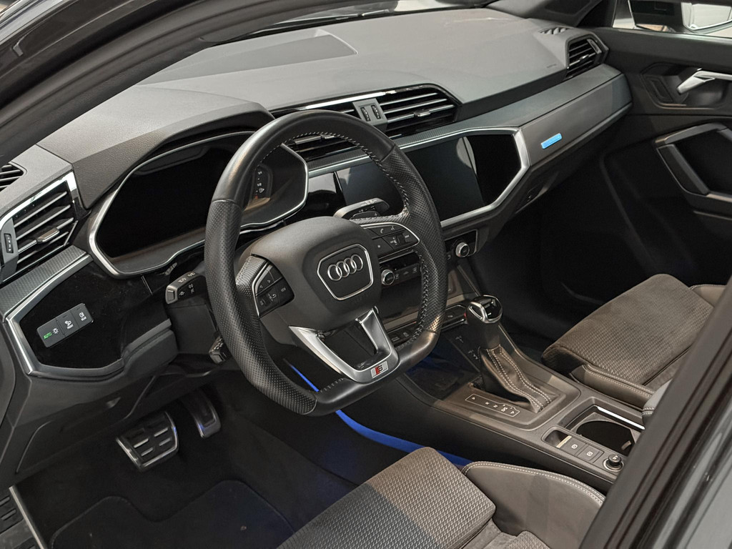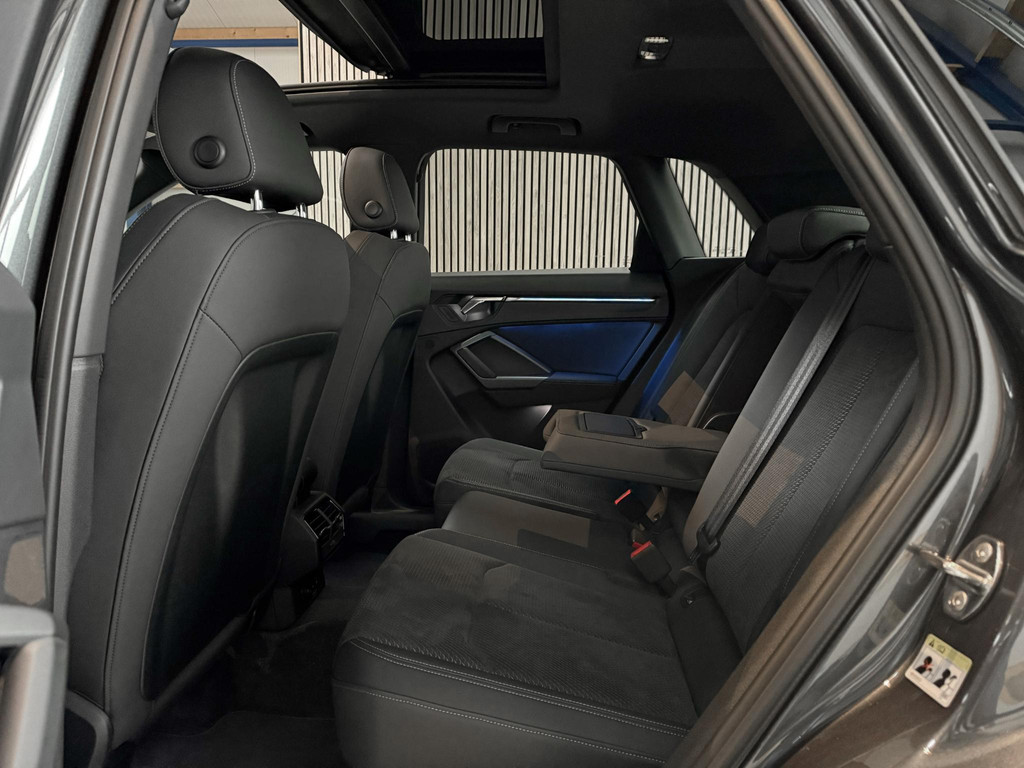 De uitrusting is zeer compleet te noemen en omvat onder andere; panoramadak, climatronic, lederen bekleding, Isofix, cruise control, lane assist, elektrische achterklep, led koplampen, matrix knipperlichten, automaat, virtual cockpit, zwart optiek plus pakket, CarPlay, sfeerverlichting, en nog meer om van te genieten. Daarnaast is de Q3 voorzien van het Audi Sportpakket om het sportieve en avontuurlijke karakter van uw Audi Q3 te accentueren.