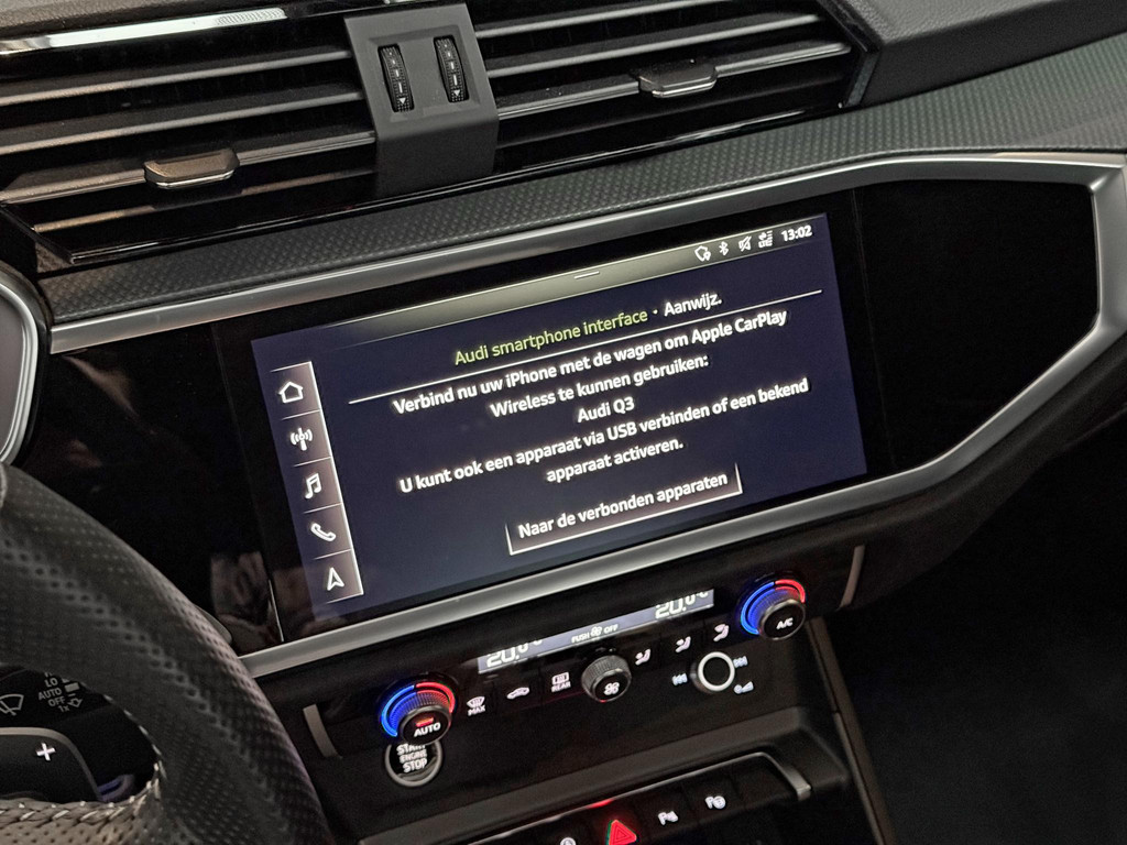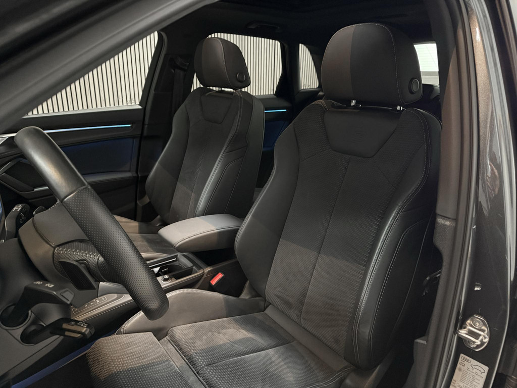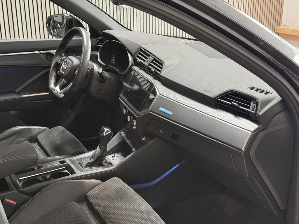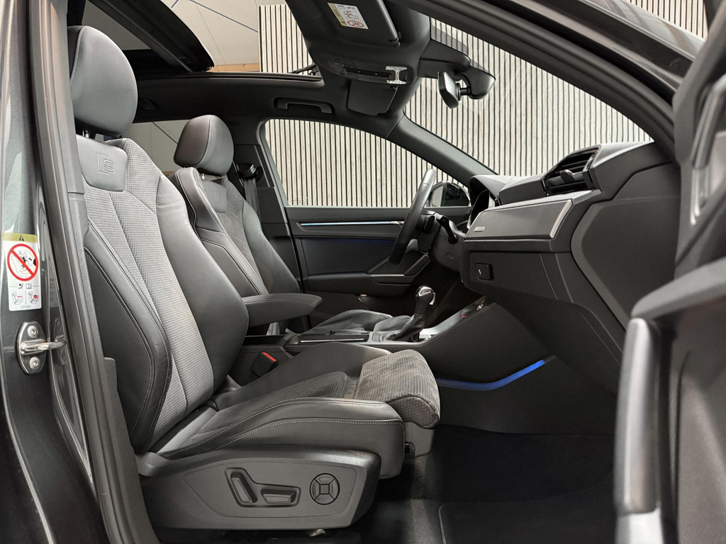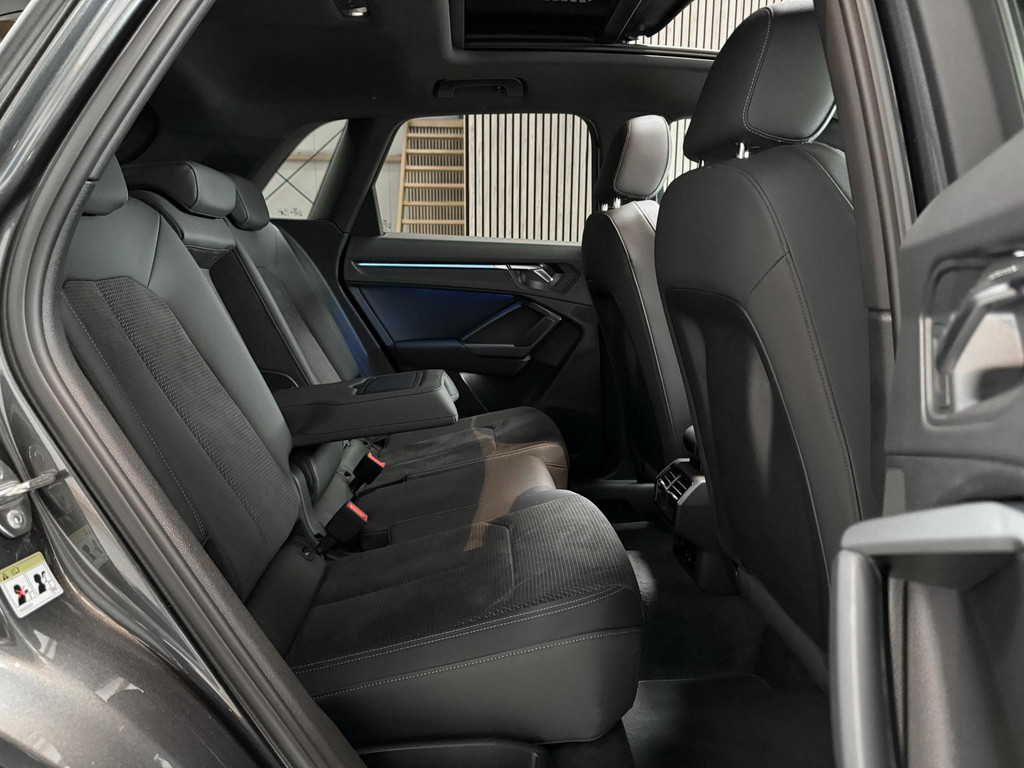 De uitrusting is zeer compleet te noemen en omvat onder andere; panoramadak, climatronic, lederen bekleding, Isofix, cruise control, lane assist, elektrische achterklep, led koplampen, matrix knipperlichten, automaat, virtual cockpit, zwart optiek plus pakket, CarPlay, sfeerverlichting, en nog meer om van te genieten. Daarnaast is de Q3 voorzien van het Audi Sportpakket om het sportieve en avontuurlijke karakter van uw Audi Q3 te accentueren.